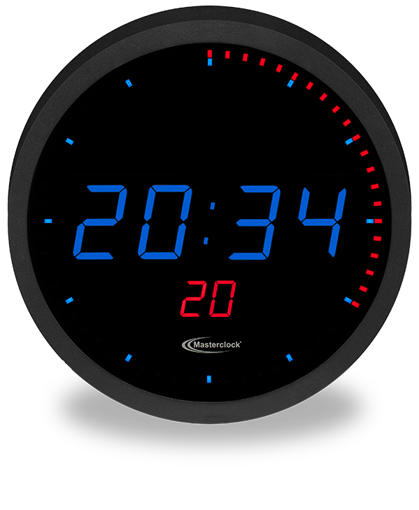 2.3 in (5.8 cm) 4-Digit LED Display Panel with circular second ticks (red, green, blue, or amber), wall-mountable, syncs to any NTP source.